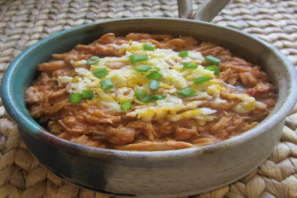 A delicious alternative to traditional chili, made with pork loin, wild rice, white beans, and authentic Mexican red chile. Make it easily in a slow cooker.