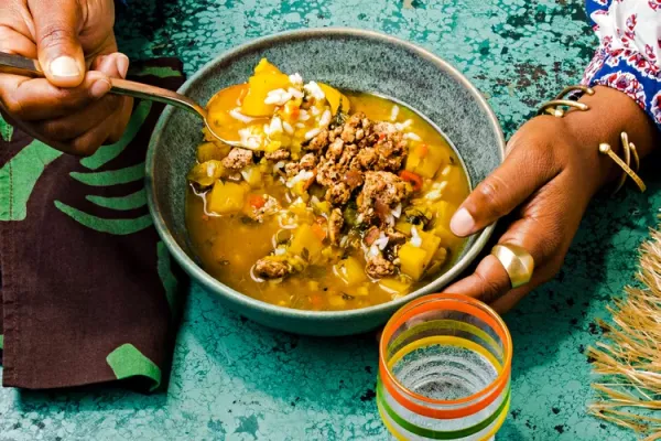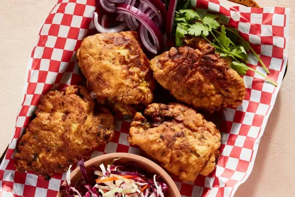 To help build deep layers of flavor in these tacos, Fermín Núñez begins his marinade by toasting and charring aromatics: dried chiles, cinnamon, allspice, and onions all hit the heat before soaking with juicy chicken thighs for an hour, imparting smoky flavor before they cook quickly on the grill or in the oven (see Note). Pair them with fresh tomatillo salsa cruda for a next-level taco night.