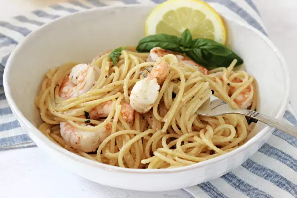 This lovely lemon garlic shrimp dish with spaghetti pasta is deliciously creamy and comes together in just 30 minutes, making it perfect for busy weeknights!