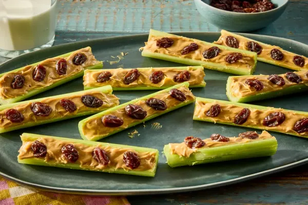 Ants on a log is a fun snack that kids can make. The recipe consists of artfully arranged celery, peanut butter, and raisins. Ants on a log is a fun snack that kids can make. The recipe consists of artfully arranged celery, peanut butter, and raisins.