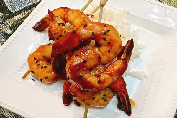 This hot honey shrimp has a dazzling flavor profile—sticky, tangy, and just a little sweet heat. Serve as an appetizer, on skewers if you like, or feel free to add the shrimp to some stir fry vegetables for dinner.